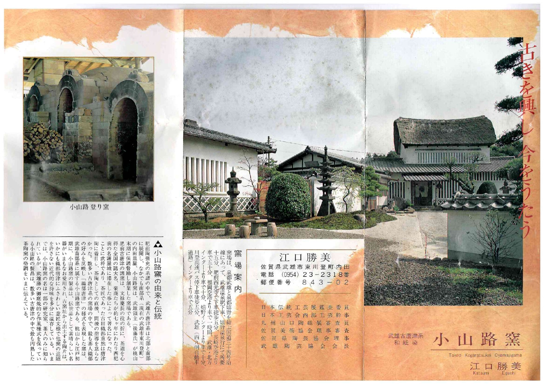 Eguchi Katsumi (1936–), a master craftsman who revived the Koyamaji Kiln in 1968, is the authentic successor of the Nanbu Kokaratsu tradition in Takeo, Saga Prefecture, which dates back to the late Momoyama period. Celebrating his 88th birthday (Beiju) in 2024, he remains a living legend of Hizen ceramics. This pair of vessels fuses the solemnity of traditional Oribe Karatsu with his original decorative aesthetic, creating a supreme work coveted by discerning craft collectors. The heart of this work is the Washizome (washi-dyeing) technique, which involves adhering thin washi paper to the bisque-fired surface to allow pigments to permeate. This creates a dreamlike gradation—as if the colors are seeping through the gaps in the fibers—that is impossible to achieve through direct brushwork. Eguchi has meticulously calculated the mineral components of the clay and the absorption rates of the pigments; while the indigo and brown floral petals possess the transparency of watercolors, the colors are permanently fused deep into the ceramic body through high-temperature firing.