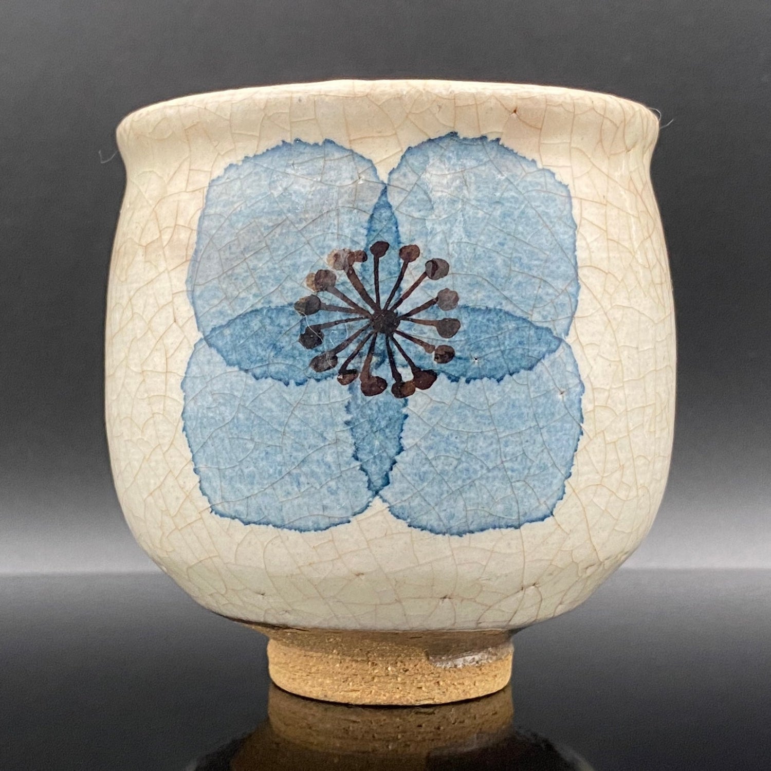 - Note: Of this two-piece set, the cup on the left (with the brown floral pattern) features a deep "Kannyu" (crazing) extending from the rim to the body, where a slight catch can be felt with a fingertip. While this does not currently affect the structural integrity or functional use, we have explicitly noted it here as a reflection of the proprietor's commitment to transparency regarding the unique characteristics of vintage ceramics. In consideration of this, we are offering this masterpiece from the artist’s peak period at a special discounted price.