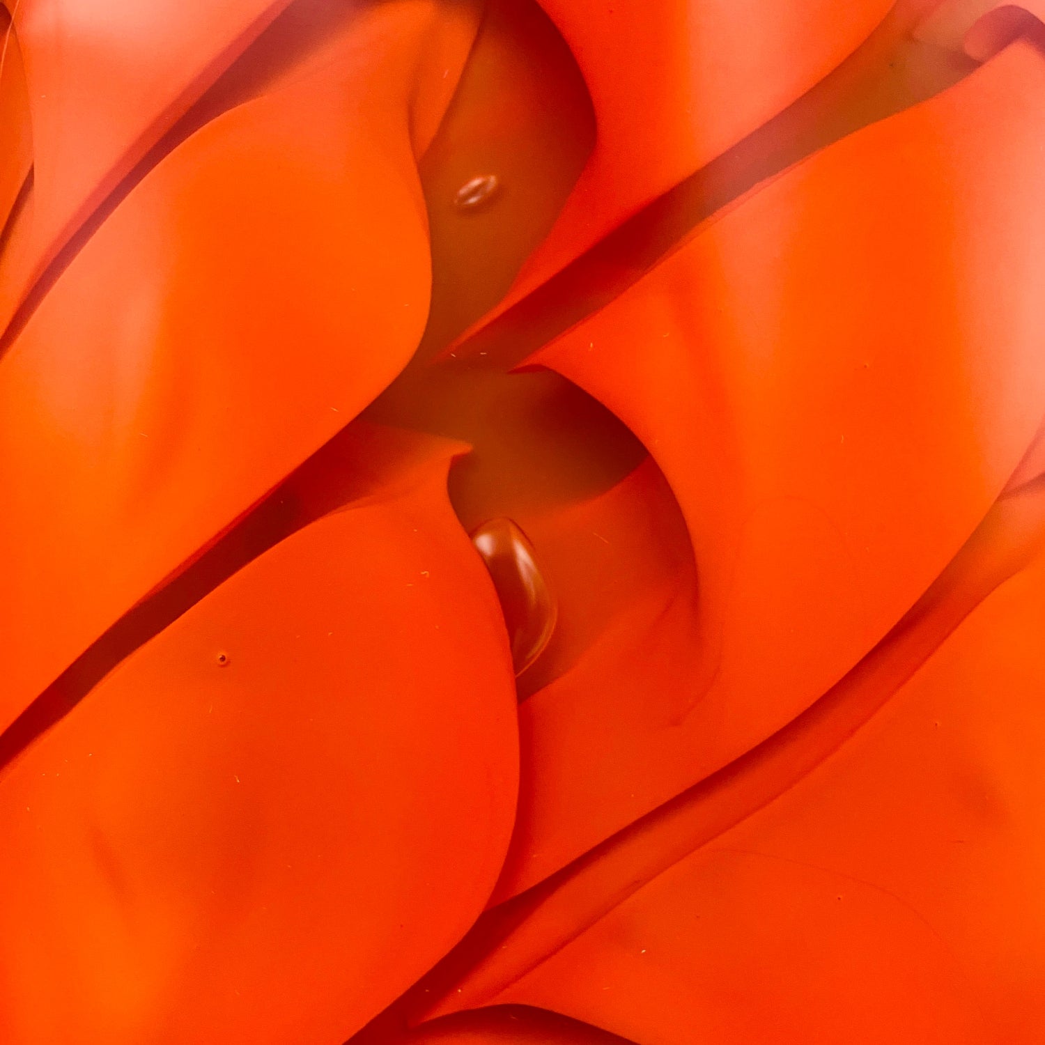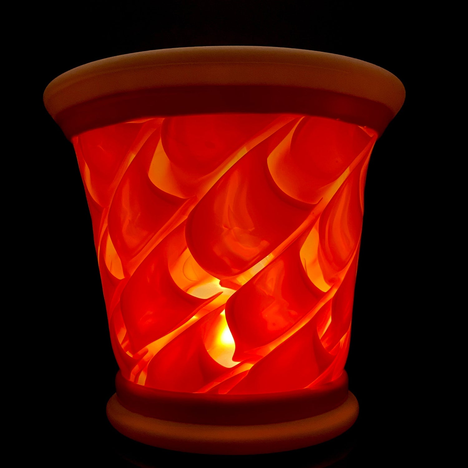 The core of this work, the Yahazu (arrow-notch) pattern, is a technique that represents the very essence of Iwata’s artistry. It is created by physically stretching and rotating layers of molten glass of different colors. To control the brilliant, flame-like red and pure white glass layers without distortion on such a large vessel—measuring approximately 23 cm in diameter and 25 cm in height—requires highly sophisticated heat management and master-level hotworking skills. The opaque white and transparent red glass, which possess different thermal expansion coefficients, are fused at the molecular level in a molten state exceeding 1,000 degrees Celsius. The precise physical calculations required to avoid breakage during the cooling process represent the pinnacle of the "dialogue between fire and matter."