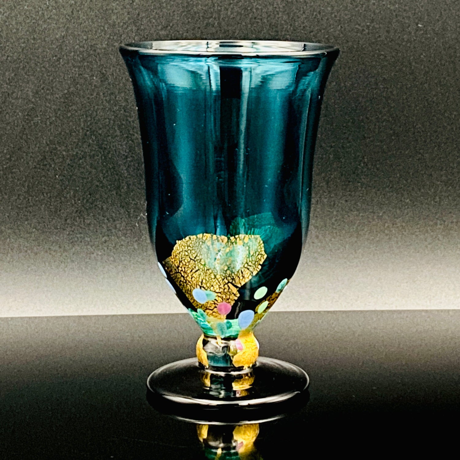 Hand-blown Glass Cup by Koji Ishii: Lapis Lazuli Blue Jellyfish #171