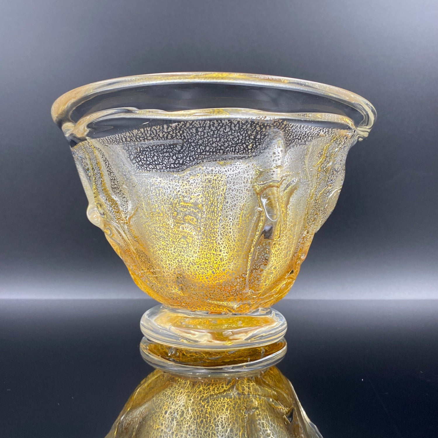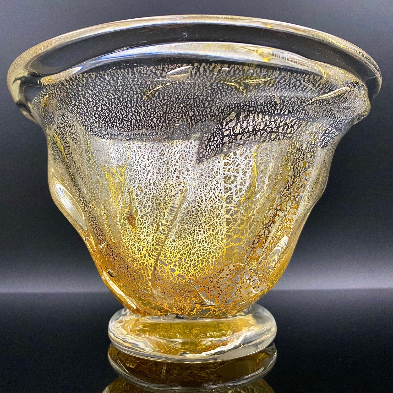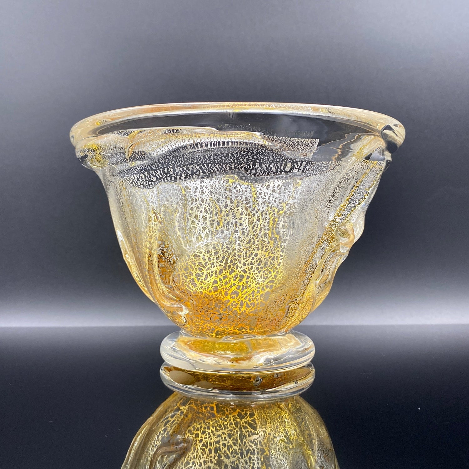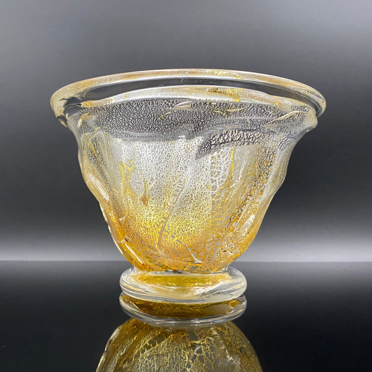 今回ご紹介する作品は、壹谷旭の窯稀彩アイスボウル(Ice Bowl)です。金銀彩が織りなす光の表情。厚みある手吹きガラスに宿る曲線美が、テーブルに上質な彩りを添えるアイスボウルです。厚みのあるガラスに流れるような曲線が美しく、透明感の中に金色が繊細に広がるデザインは高級感を漂わせます。
