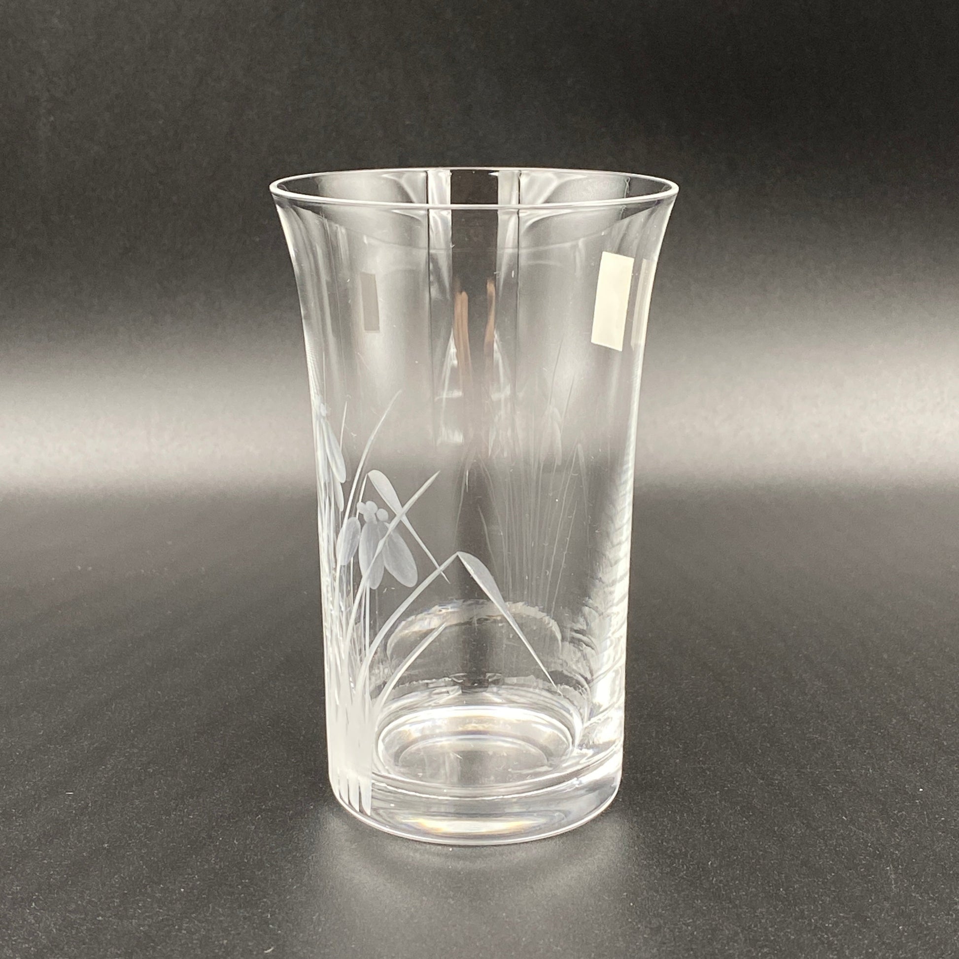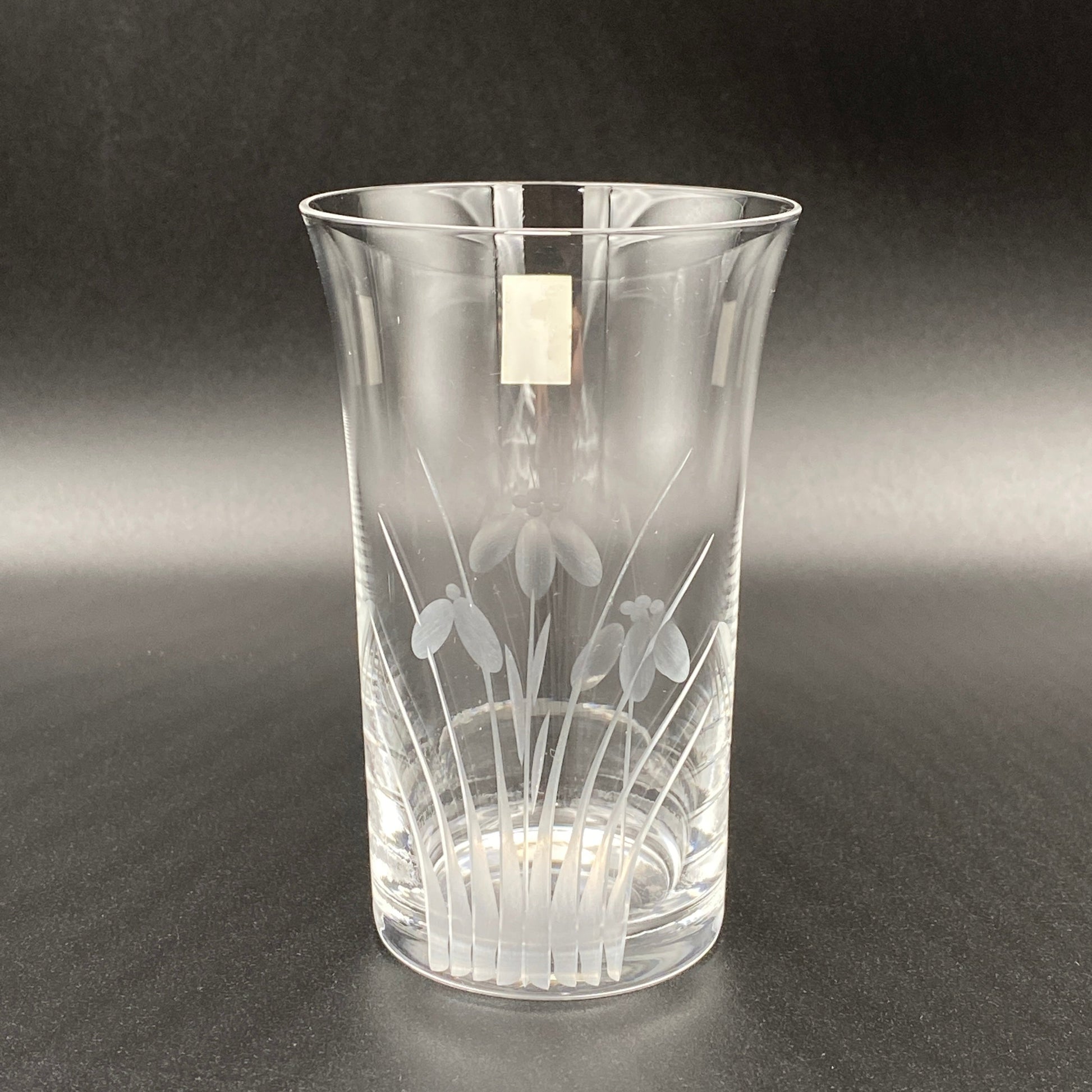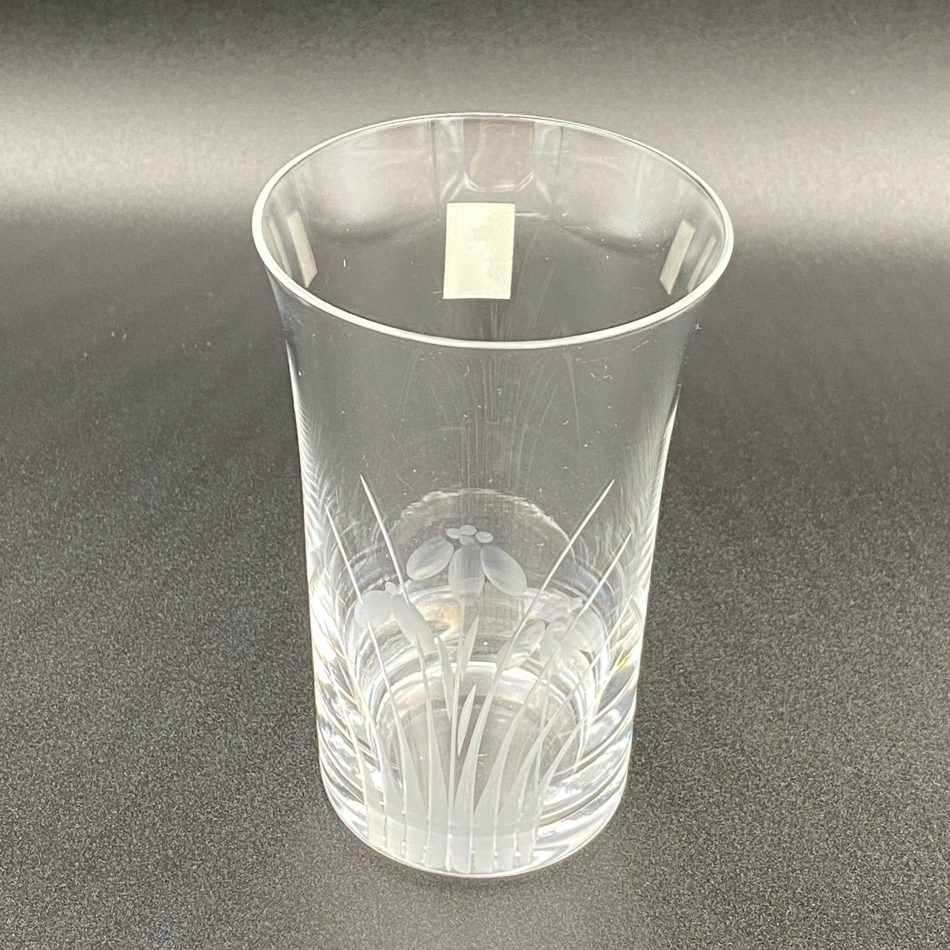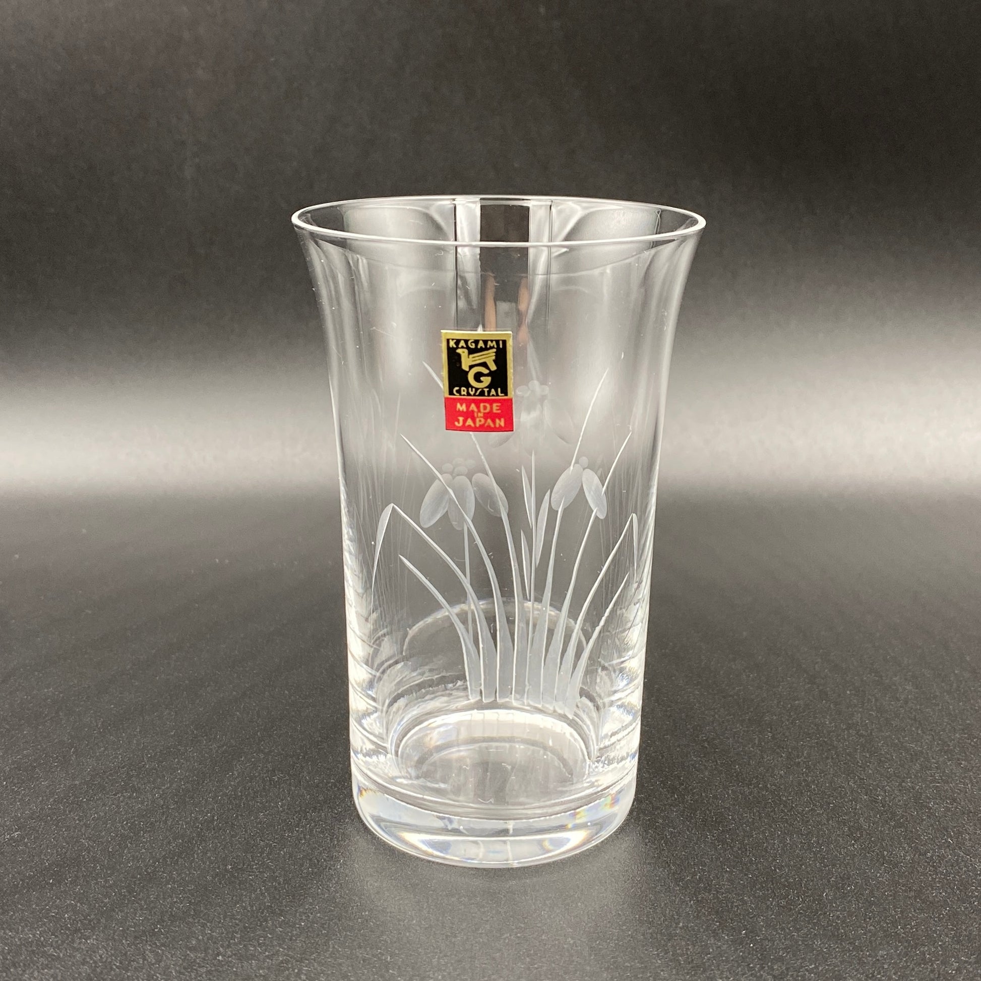 この商品は中古としての提供ではありますが状態は非常に良く、ロゴマークのシールが残されていることから未使用のものと思われます。また、ロゴマークのデザインや商品説明書に書かれている社名表記(各務クリスタル製作所)、本社住所(東京都大田区)から、1970年代にかけて制作されたものであると考えられます。