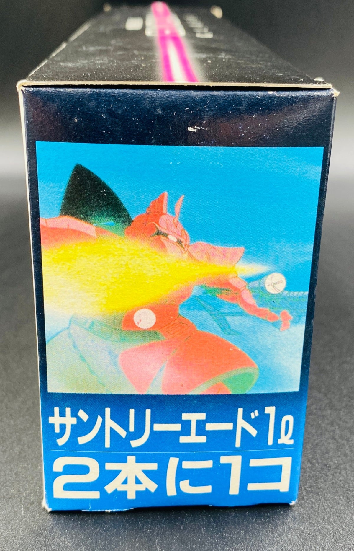 「サントリー エード ガンダムグラス(SUNTORY ADE GUNDAM GLAS)」は、1980年代初頭にサントリーが展開した清涼飲料「サントリーエード」のプロモーションの一環として制作されたノベルティグッズです。このグラスは、当時の人気アニメ『機動戦士ガンダム』(1979年放送)とのコラボレーションによって誕生しました。グラスには、ガンダムやジオング、ビグ・ザム、エルメス、ドム、ギャンなど、初代ガンダムのモビルスーツが描かれており、全5種類のデザインが存在します。これらのグラスは、サントリーエードの販促キャンペーンの景品として配布されたと考えられます。