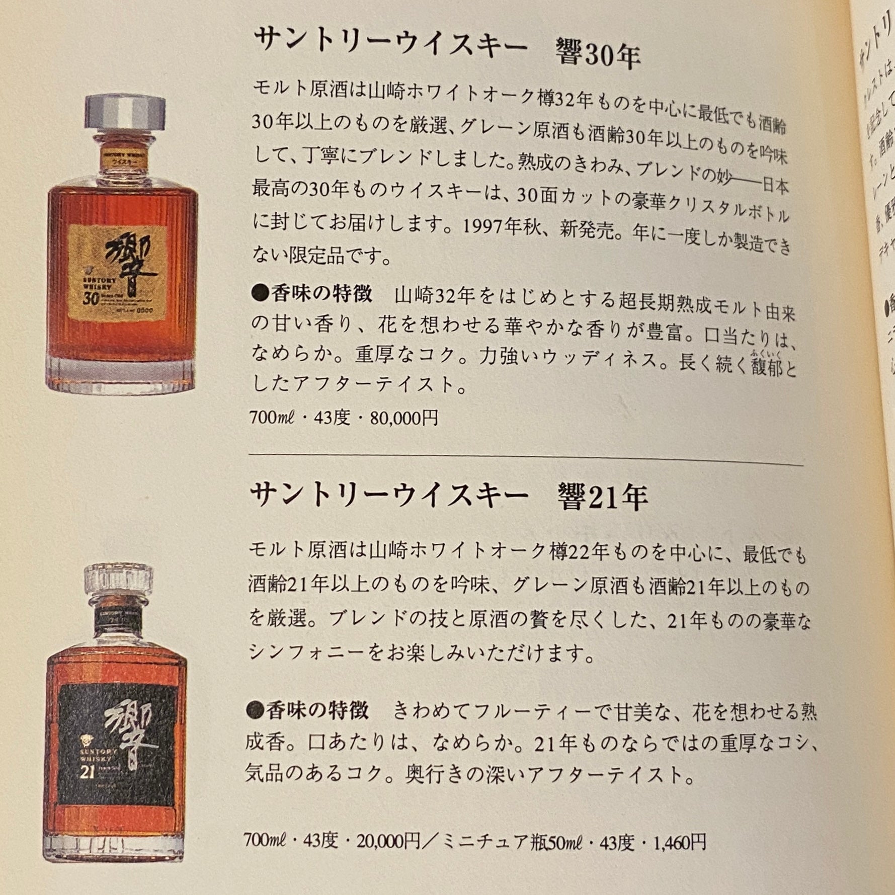 1997年にサントリー株式会社の洋酒事業部ウイスキー部によって非売品として発行されたウイスキーの手引書です。ウイスキーづくりに関する情報や、ウイスキーの飲み方、ウイスキーの楽しみ、そしてサントリー社が製造または輸入しているウイスキーについて紹介しています。