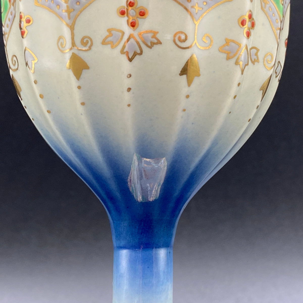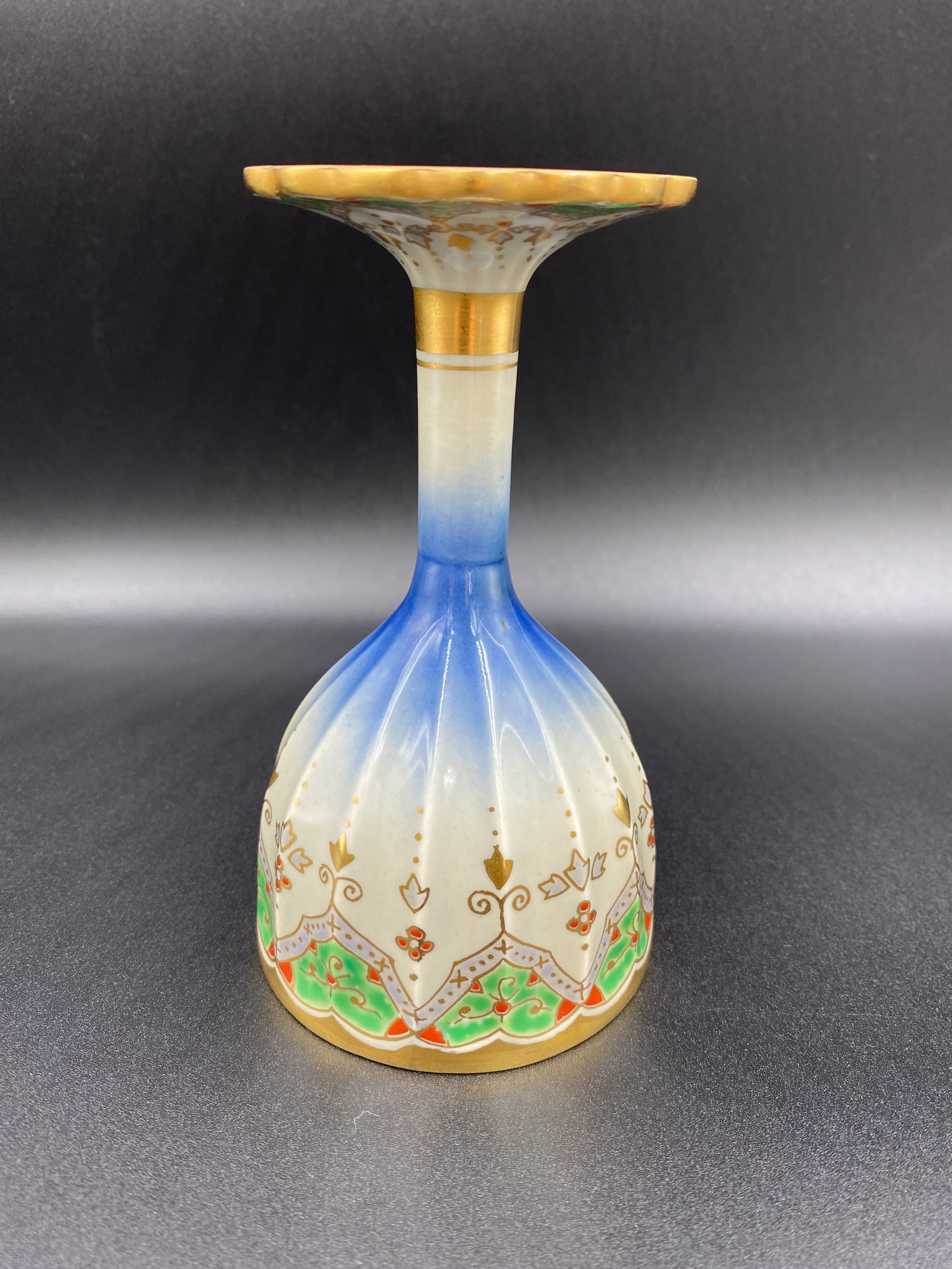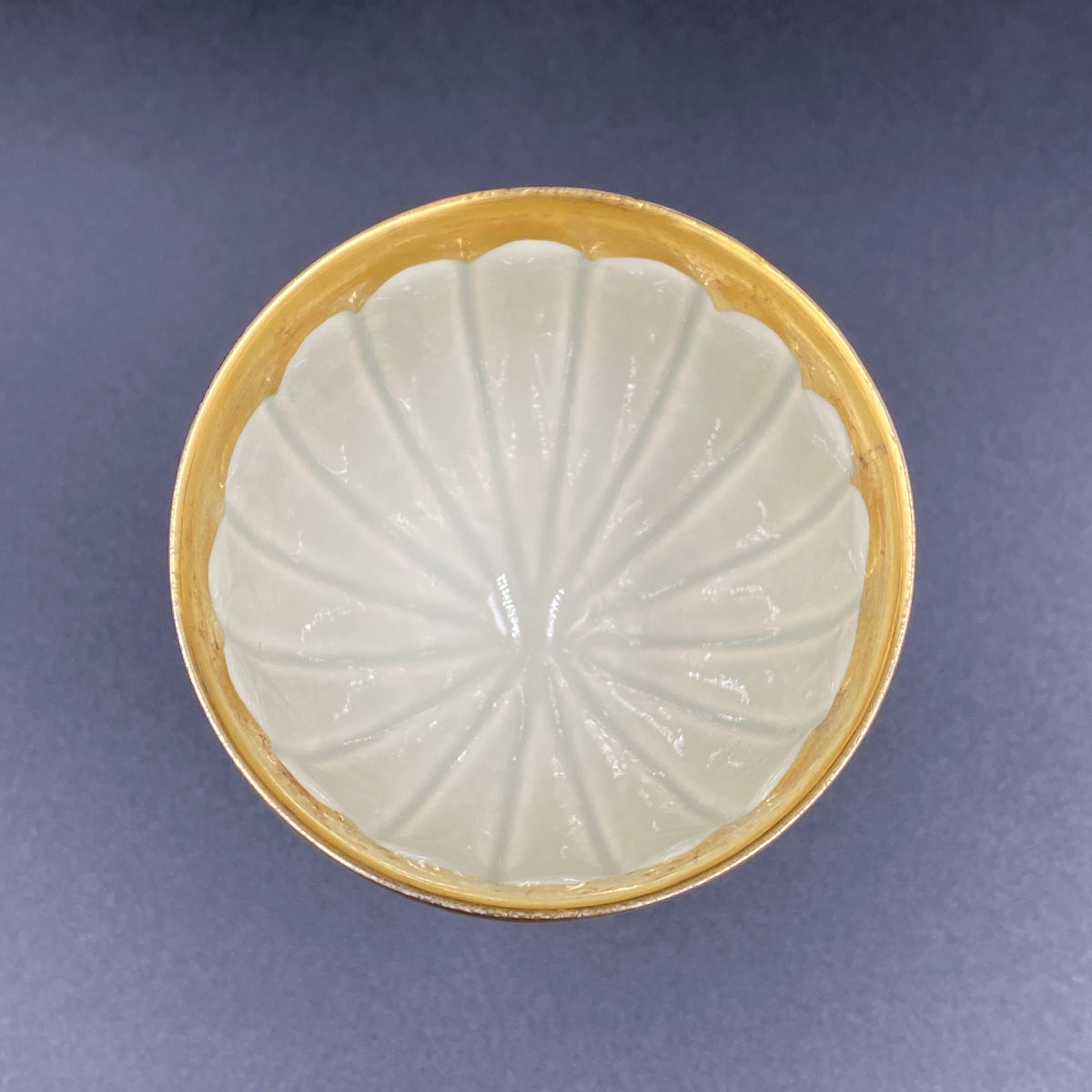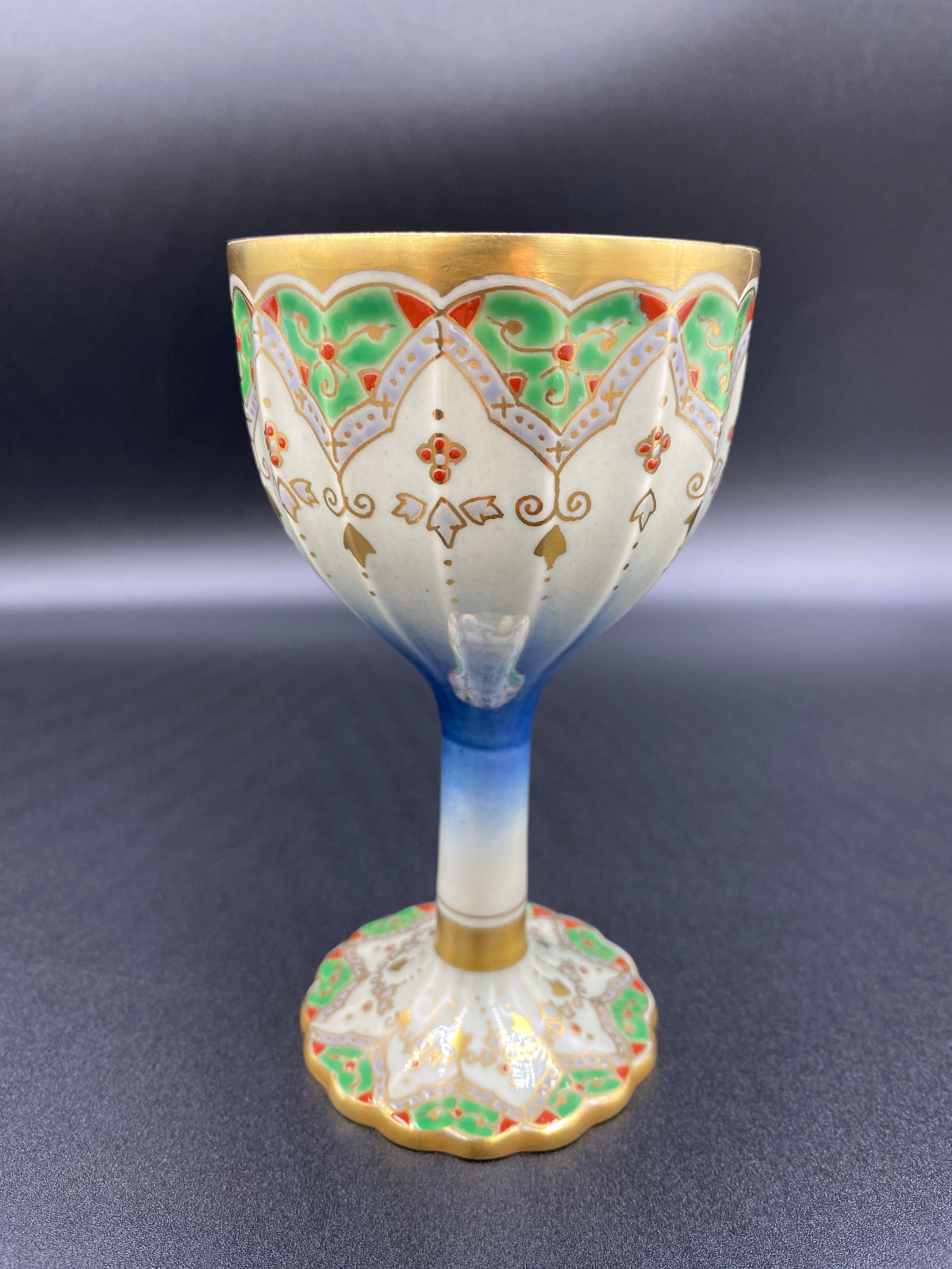 豊かで鮮やかな色付けがきれいな陶器グラスです。グラス内部には日本国の天皇や皇室を表す十六葉八重表菊を連想させる美しい文様があり、青磁の淡い緑色と金彩の調和が素晴らしい逸品です。ジャパニーズウイスキーは日本のグラスで楽しんでみてはいかがでしょうか。