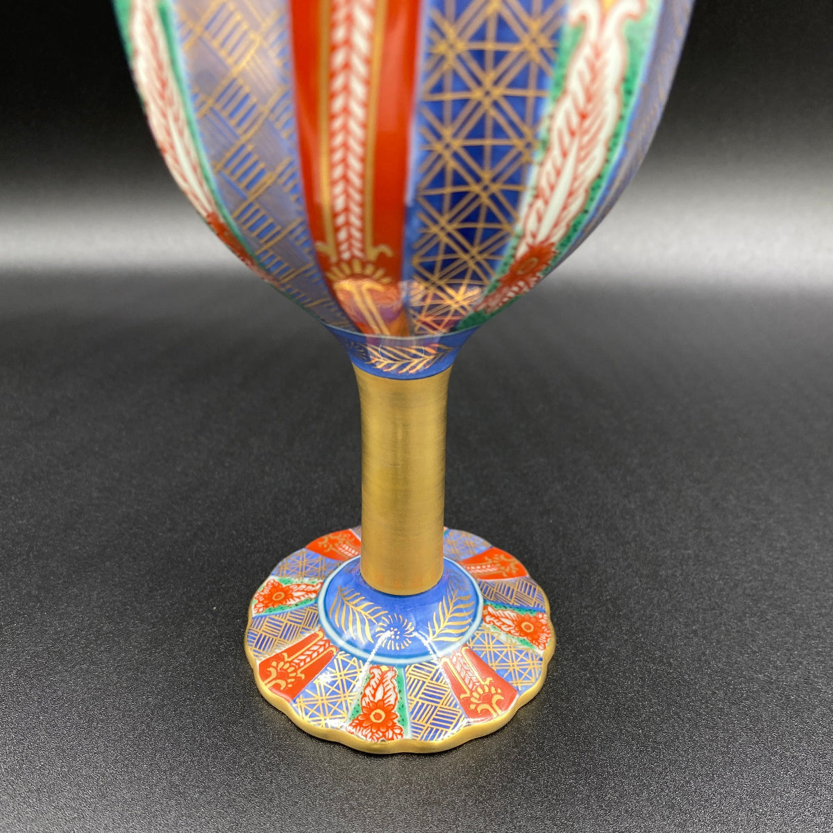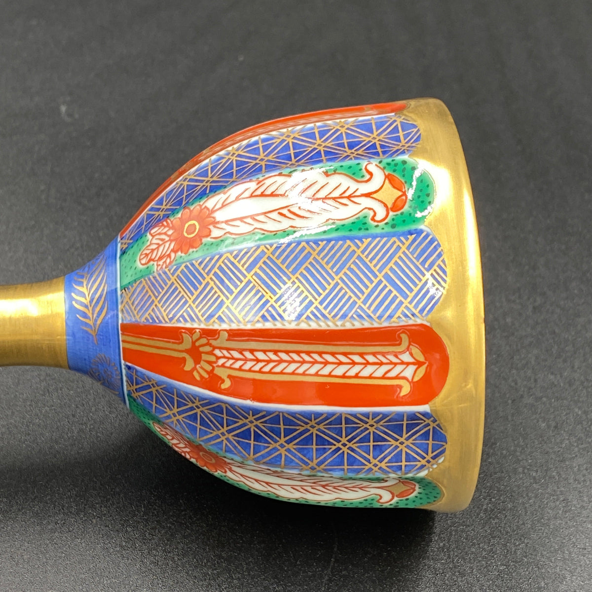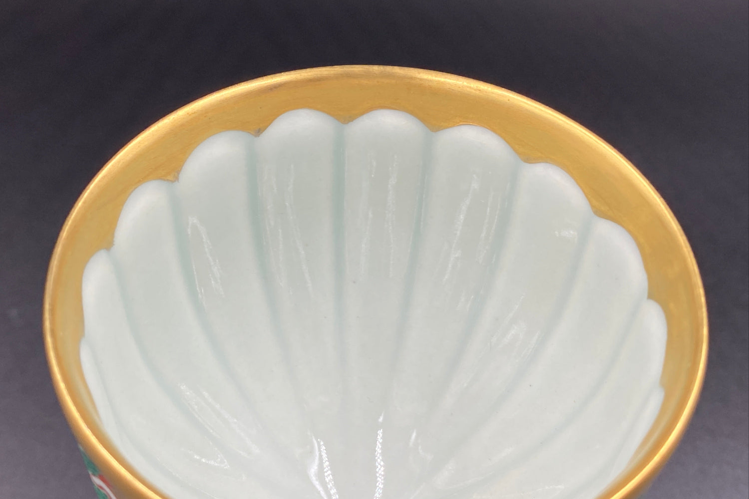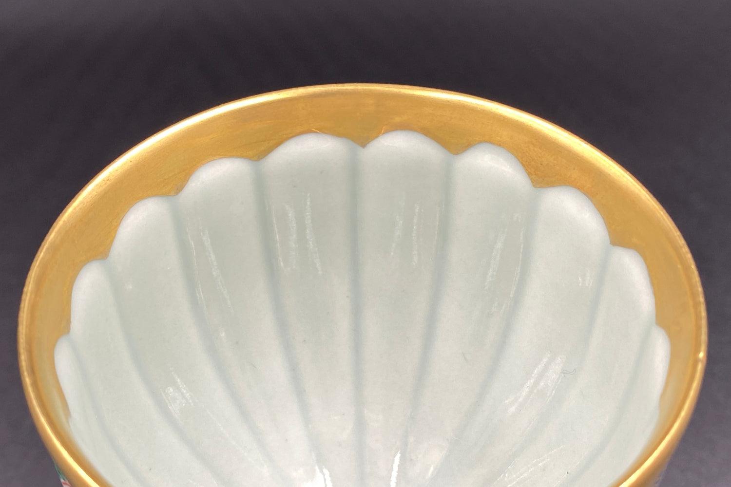 豊かで鮮やかな色付けがきれいな陶器グラスです。グラス内部には日本国の天皇や皇室を表す十六葉八重表菊を連想させる美しい文様があり、青磁の淡い緑色と金彩の調和が素晴らしい逸品です。ジャパニーズウイスキーは日本のグラスで楽しんでみてはいかがでしょうか。