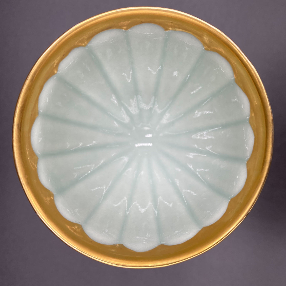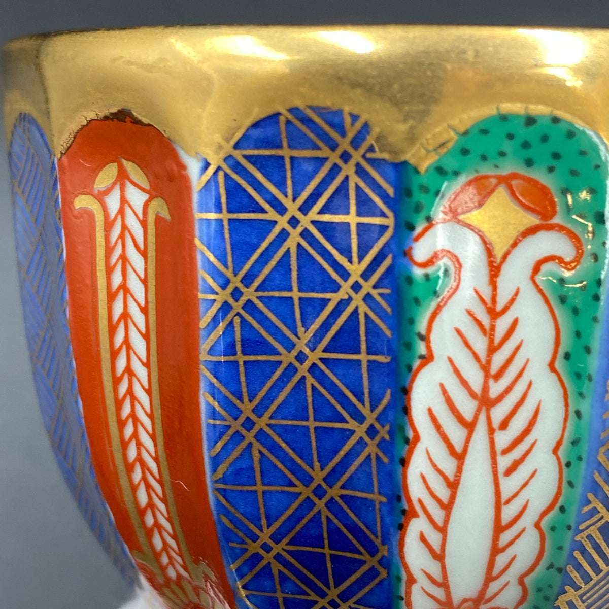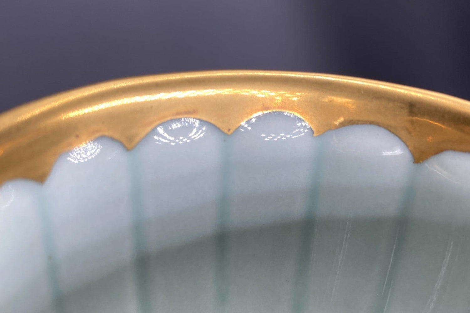 豊かで鮮やかな色付けがきれいな陶器グラスです。グラス内部には日本国の天皇や皇室を表す十六葉八重表菊を連想させる美しい文様があり、青磁の淡い緑色と金彩の調和が素晴らしい逸品です。ジャパニーズウイスキーは日本のグラスで楽しんでみてはいかがでしょうか。