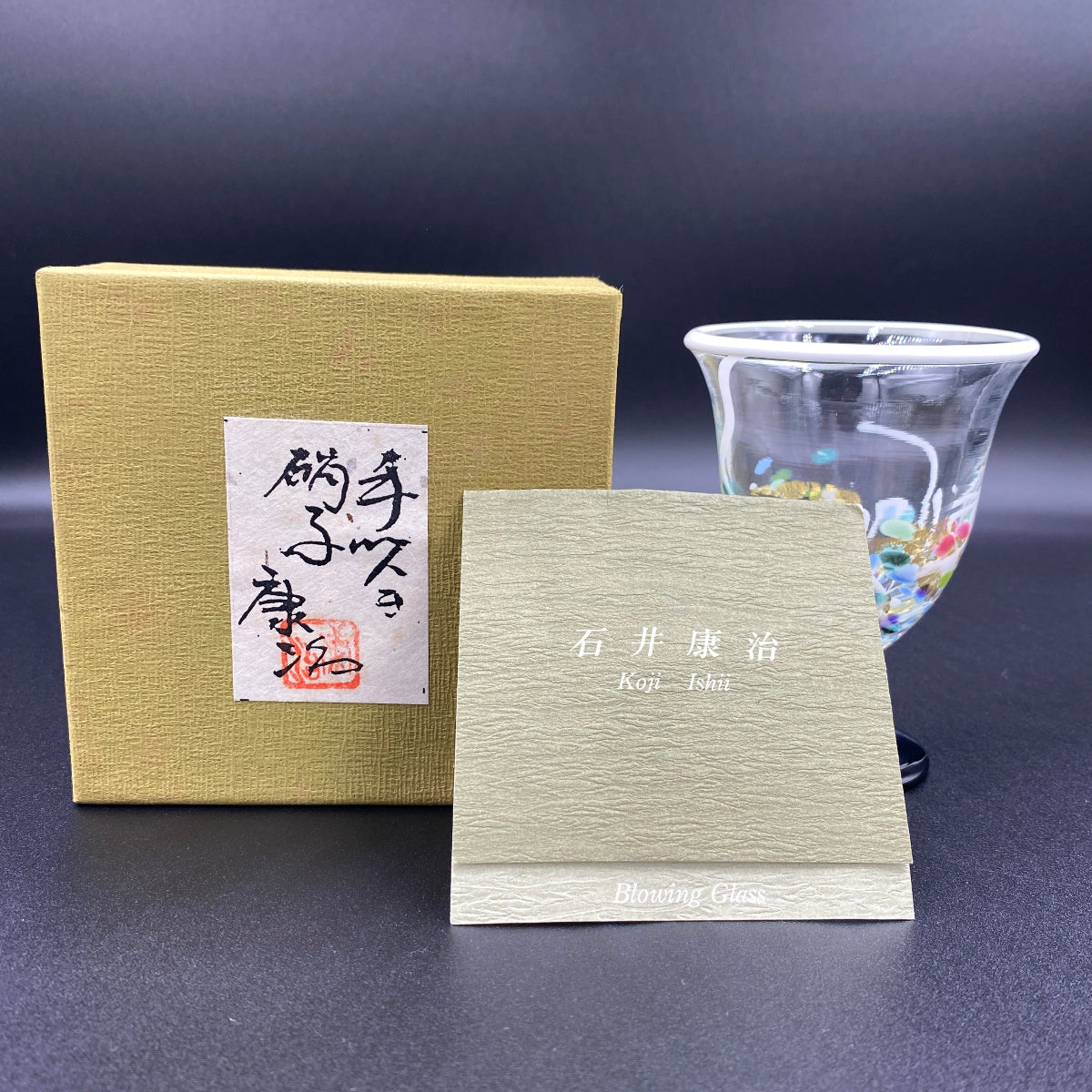 石井康治(1946–2019)は、日本を代表する硝子工芸作家で、幻想的なクラゲのモチーフ作品で知られます。独自の内包技法を用い、ガラス内部に色彩やモチーフを閉じ込めることで、深海を思わせる透明感と浮遊感を表現しました。作品はすべて手作業による一点物で、国内外の美術館に収蔵されています。小品は8万円前後から、中〜大型の代表作は100万円以上で取引されるなど、現在も高い評価を受けています。