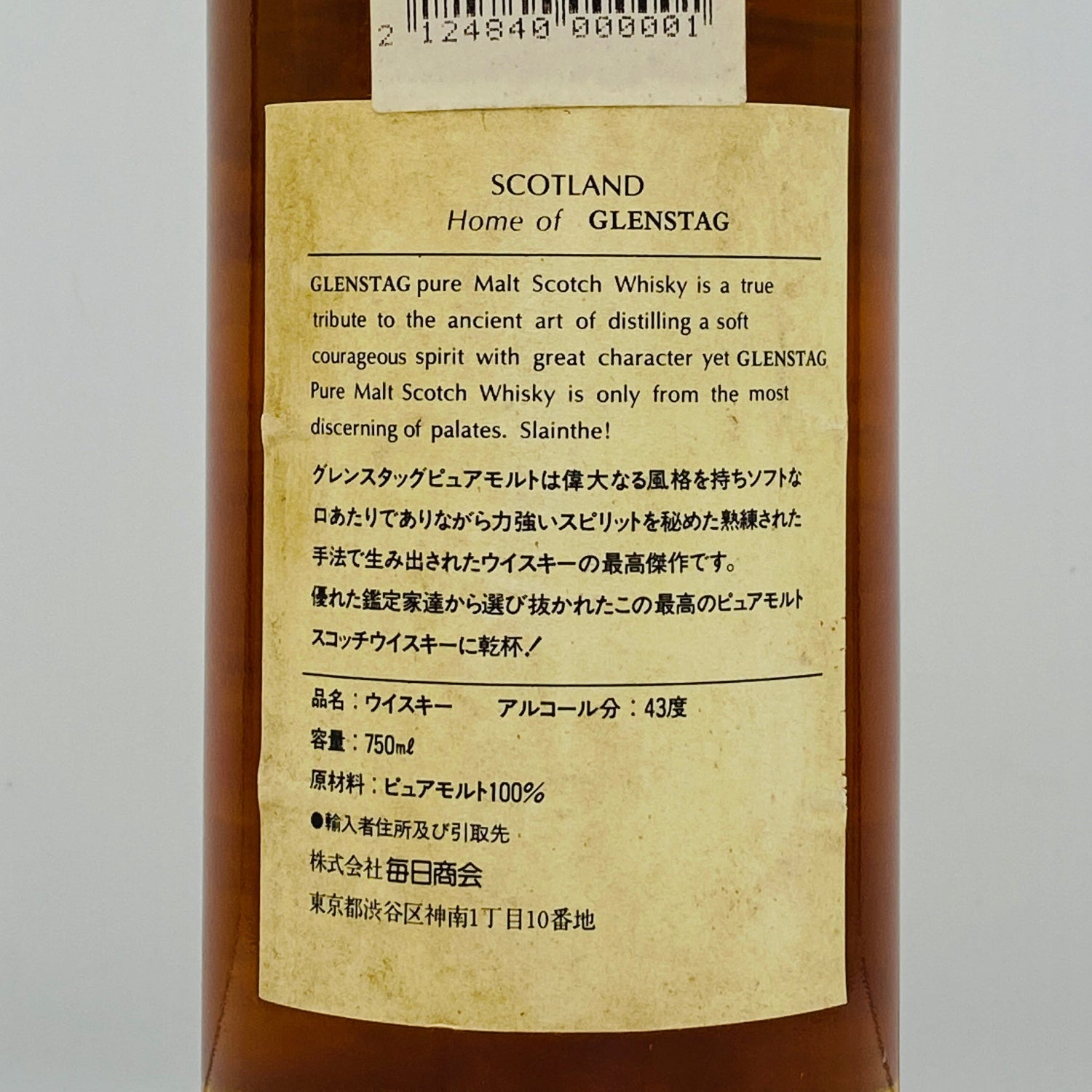 1970年代蒸留、1980年代流通、グレンスタッグ(GLEN STAG)12年、100% ピュアモルトスコッチウイスキー 750ml, 43% #105
