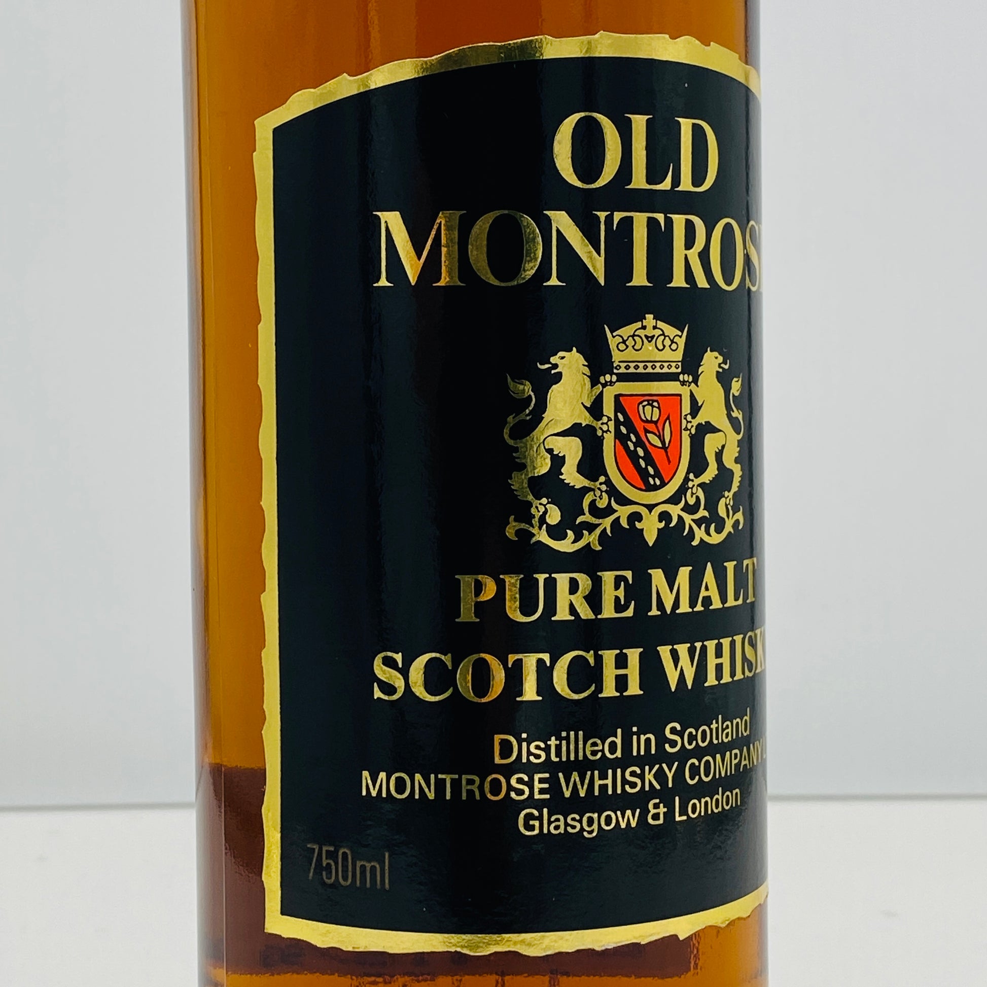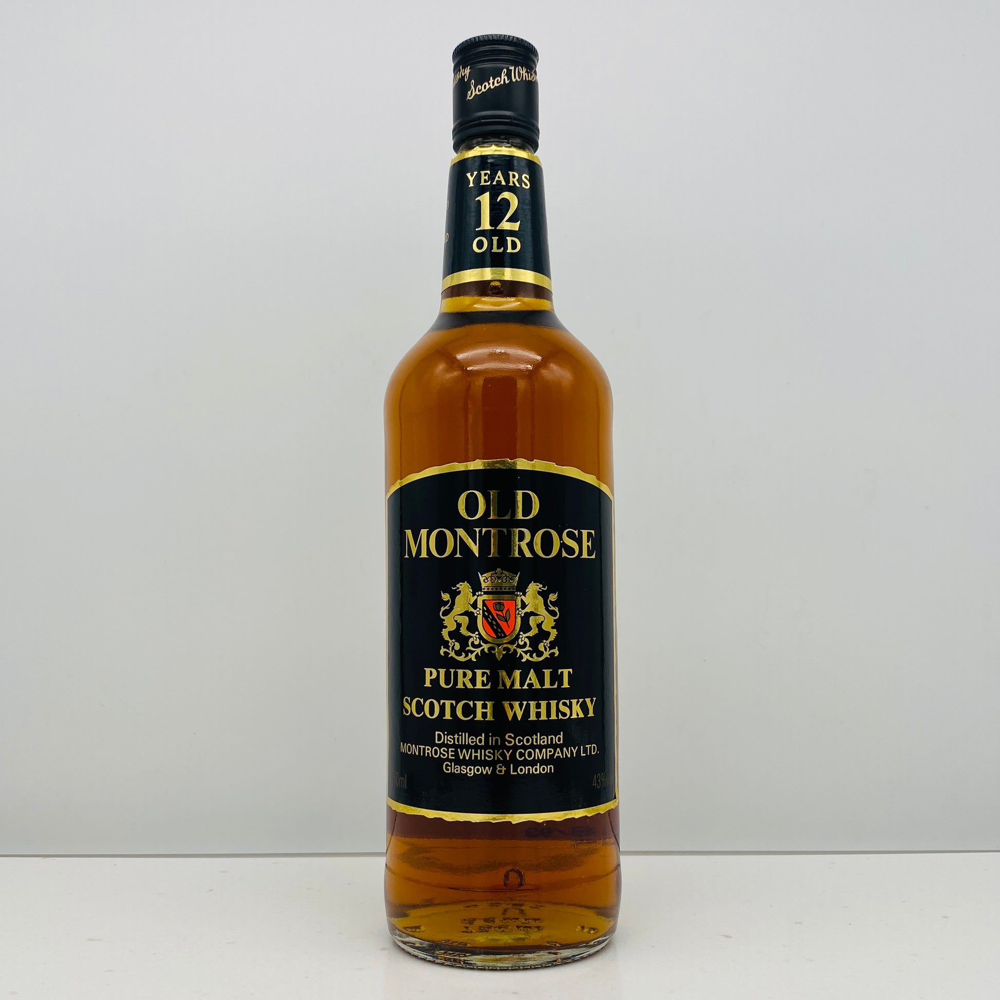 1990年代前半の日本において流通していた「オールド・モントローズ(OLD MONTROSE)12年」は、モルト原酒のみを贅沢にヴァッティングした希少なピュアモルト(現行呼称:ブレンデッドモルト)・スコッチウイスキーです。グラスゴーとロンドンに拠点を置いていたモントローズ・ウイスキー社(MONTROSE WHISKY COMPANY LTD.)の手によってボトリングされた本作は、12年という長期熟成を経た高品質な原酒のみで構成されており、容量750ml、アルコール分43度という、当時の「ウイスキー特級」時代を象徴する堂々たるスペックを誇ります。