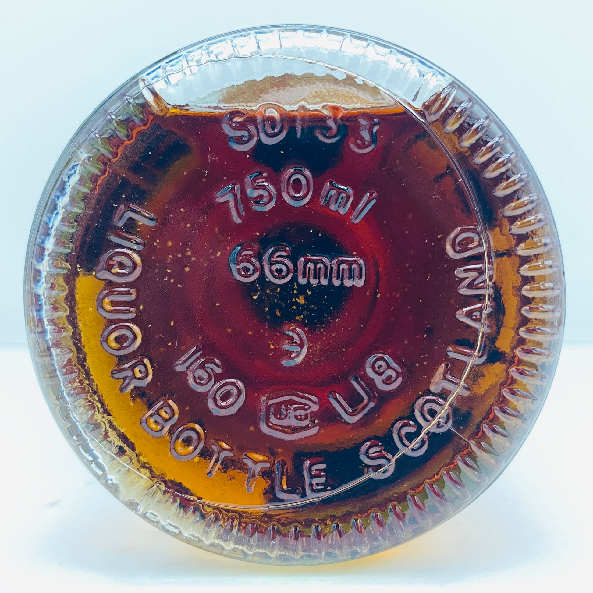 当時の日本の正規輸入品であることを証明するウイスキー特級の印がネックラベルに明記されており、背面ラベルには従価税率適用の印が記されています。背面のラベルには、当時の正規代理店であるジャーディン・マセソン・アンド・カンパニー(ジャパン)リミテッドの名称と、港区西新橋の日石本館の所在地が記されています。容量は当時の標準規格である750ml、アルコール度数は43度です。