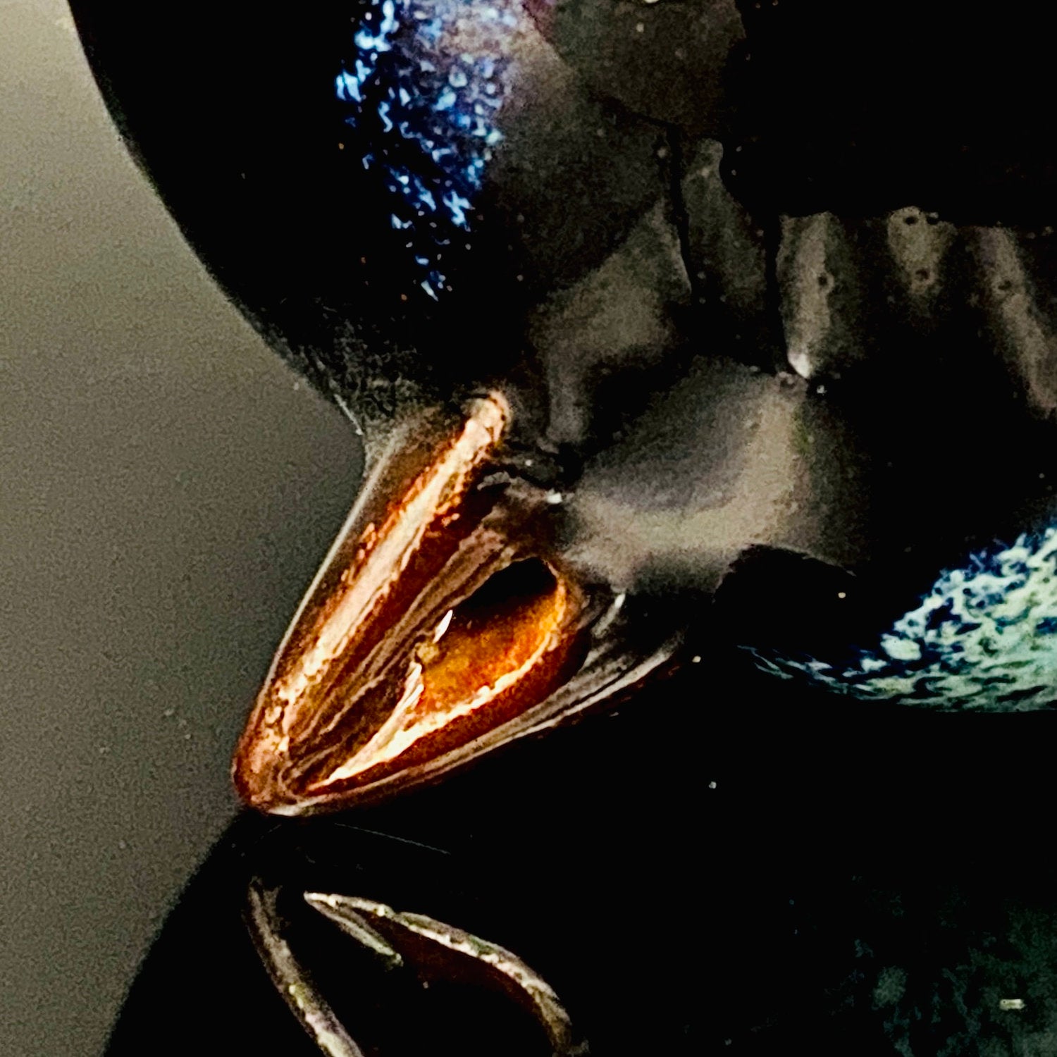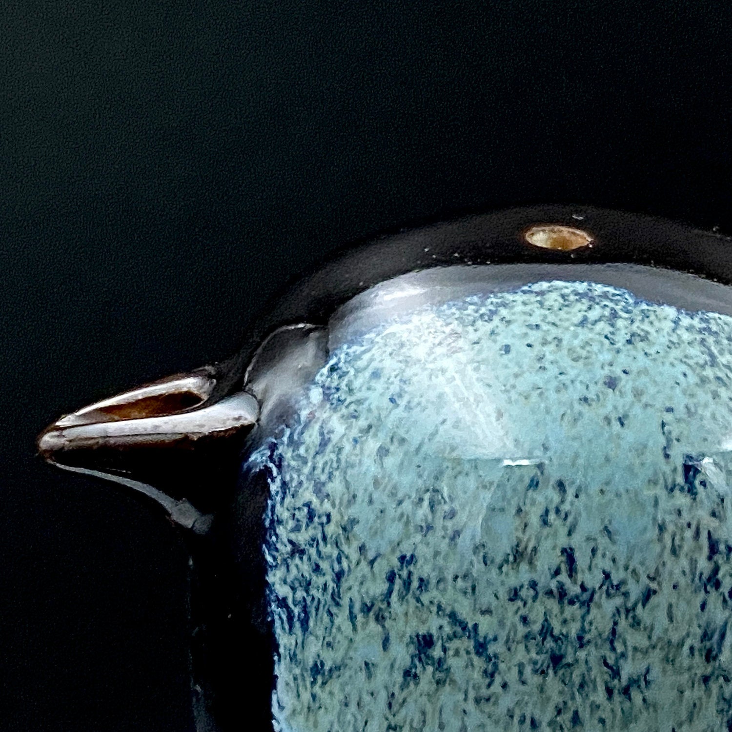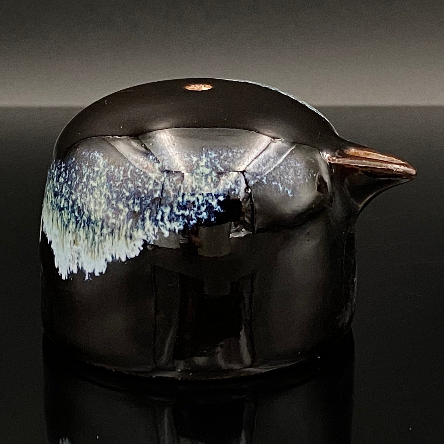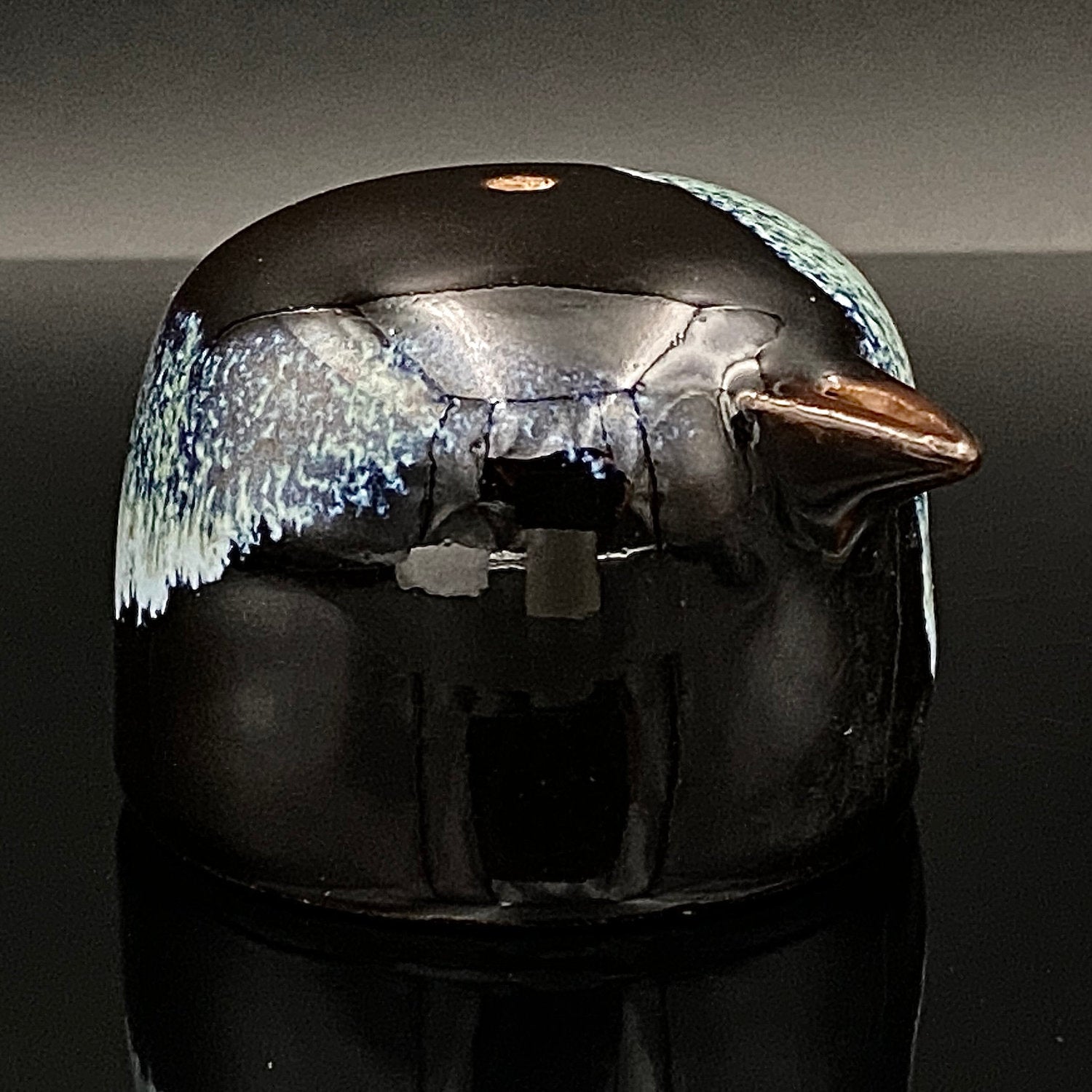 本作品は、久保義蔵氏の熟練した技術によって生み出された天目窯変の水滴です。天目窯変は、窯の内部で発生する複雑な炎の作用によって釉薬が独特の結晶や色彩へと変化する高度な技法であり、作家の計算と炎の偶然が交差する一点物の美しさを備えています。1989年に逝去した氏の作品は、現在では新たに制作されることのない物故作家の遺作として高い希少性を有しています。