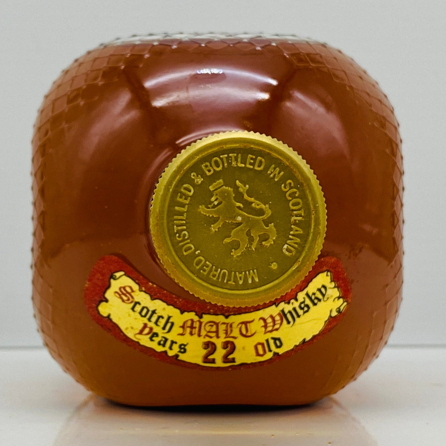 ラベルは鮮やかなゴールドと深紅の配色で、中央にはイギリスの国会議事堂のようなシルエットが描かれ、銘柄の由来となった貴族的なイメージを強調しています。このボトルは、容量750ml、アルコール度数43%という、当時の国際市場で流通していたプレミアムウイスキーの標準的な仕様です。キャップは簡素なスクリューキャップですが、ネックラベルにはウイスキーの熟成年数を示す「AGED 22 years」が誇らしげに記されています。