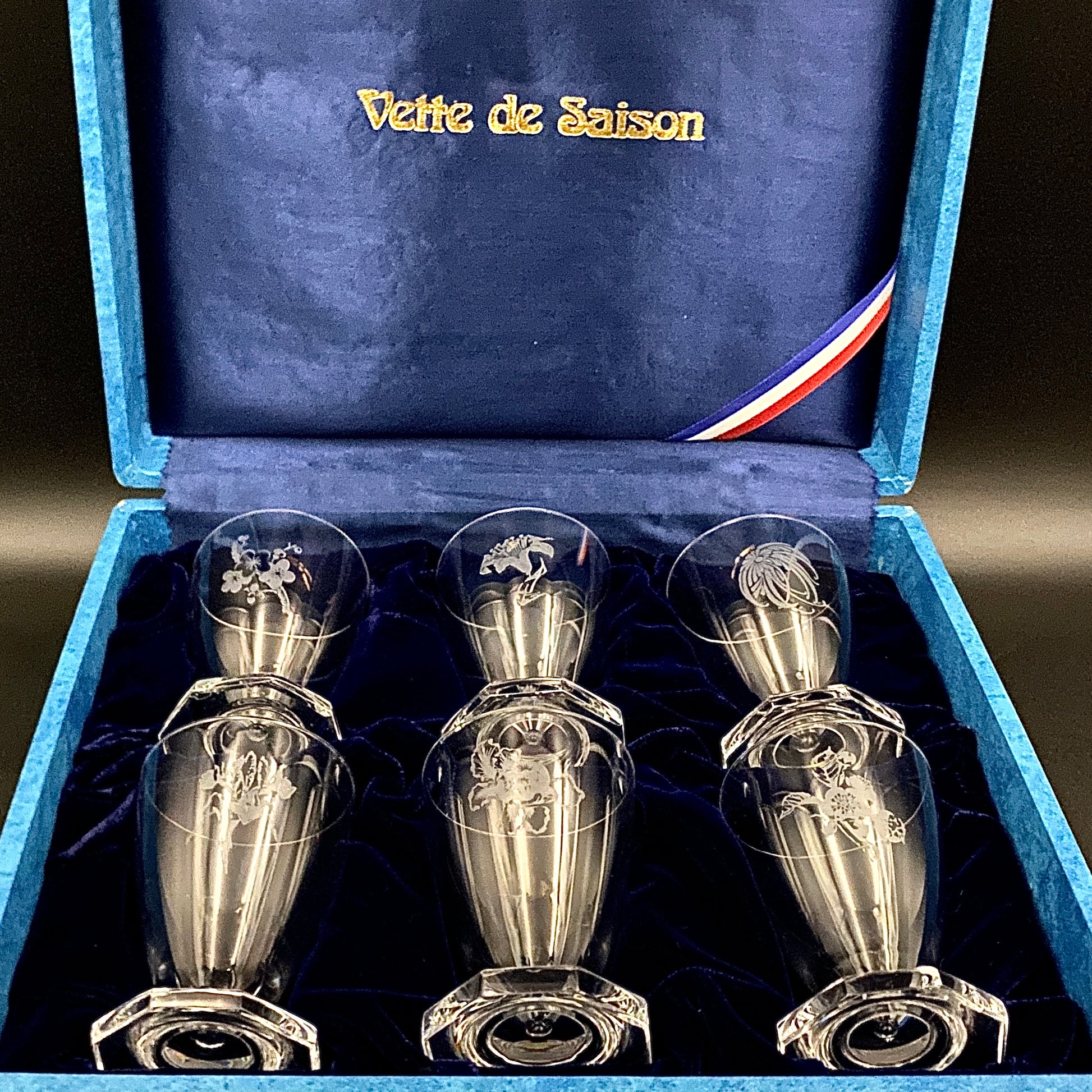 DAUM CRYSTAL(ドームクリスタル) Vette de Saison(ヴェット・ドゥ・セゾン) 花文彫刻 グラス6点セット #73