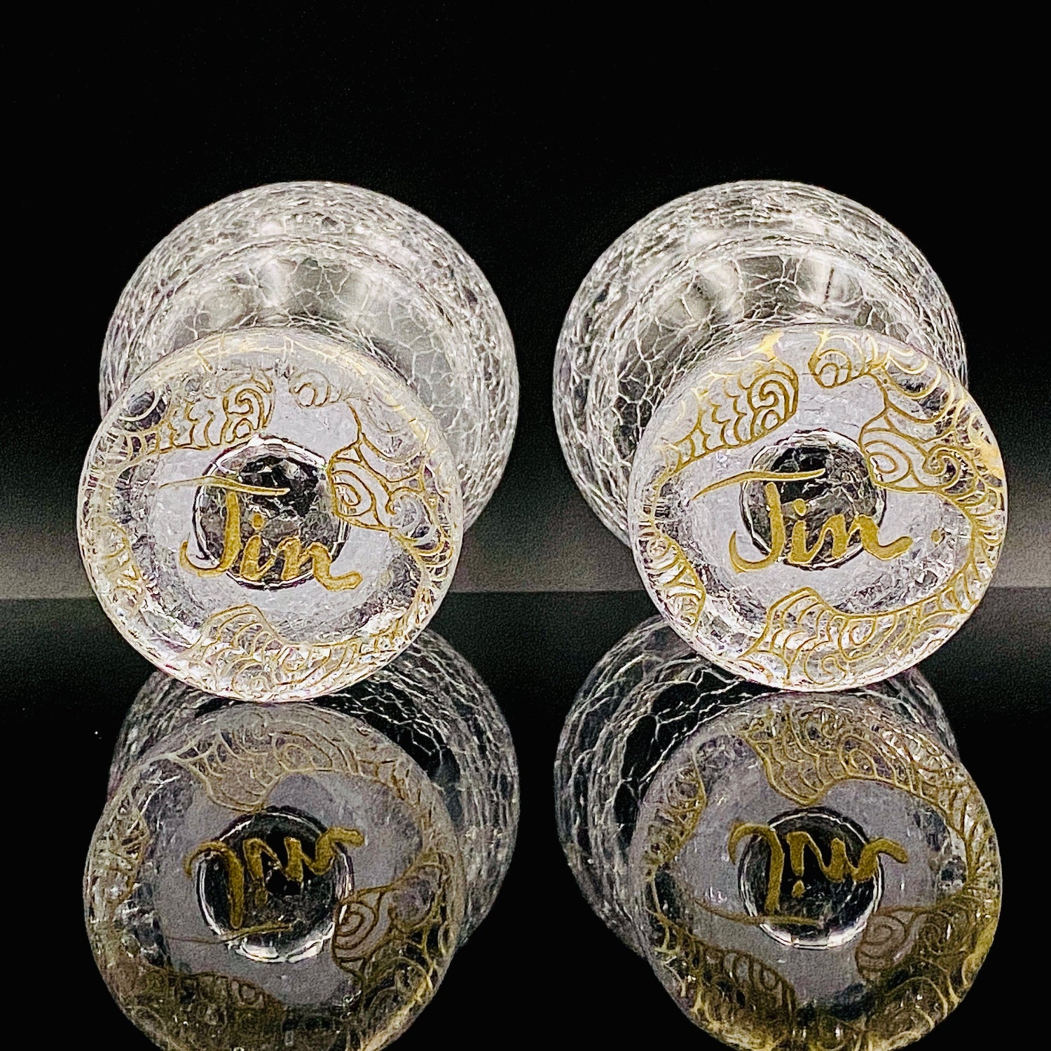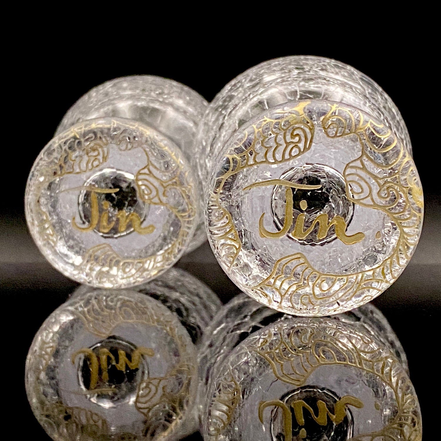 坂田 甚内(Jin)作 手吹き硝子 白金彩 金彩 玻璃盃深甚紋グラス 2点セット #81