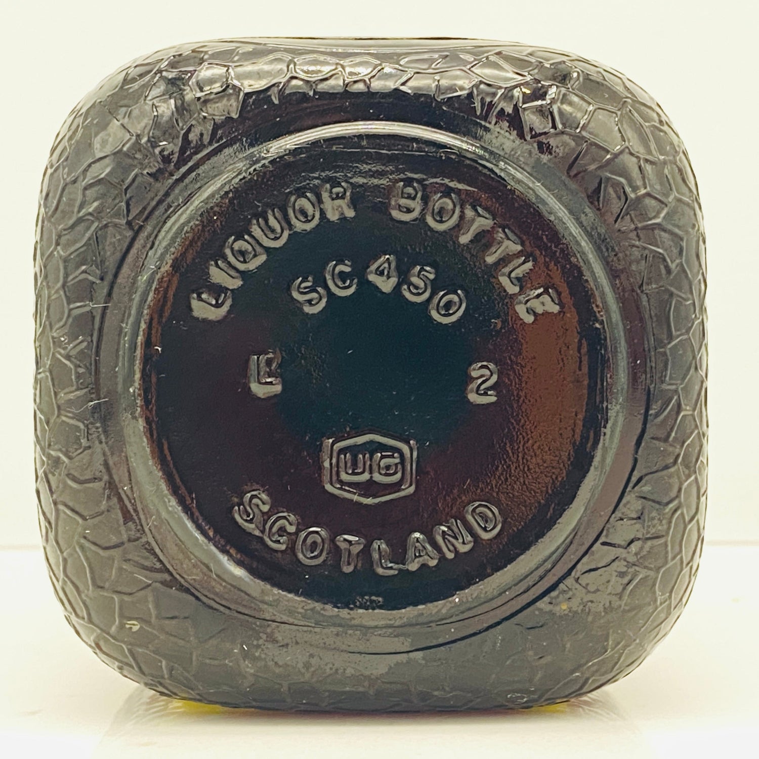 ボトルはオールドパー伝統の、岩を模したような角ばった独特のボトル形状を保ち、表面には細かな網目状のエンボスが施されています。この武骨なデザインが、ボトルの重厚感と歴史的な存在感を際立たせています。ラベルには、スコットランド最長寿者とされるトーマス・パーの肖像画が描かれており、銘柄の由来と長寿の願いが込められています。容量は760ミリリットル、アルコール度数は43度であり、当時の日本の正規輸入品として高い品質基準を満たしていました。