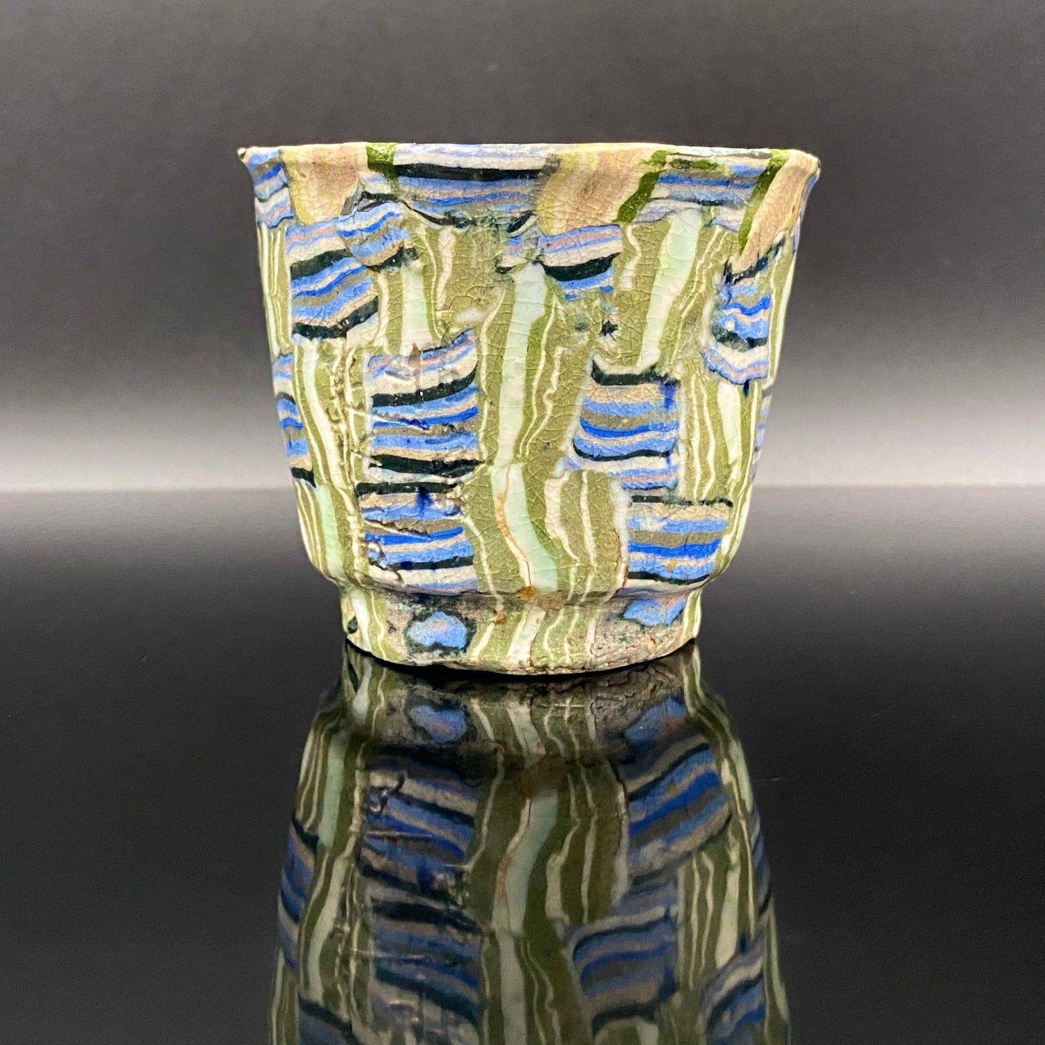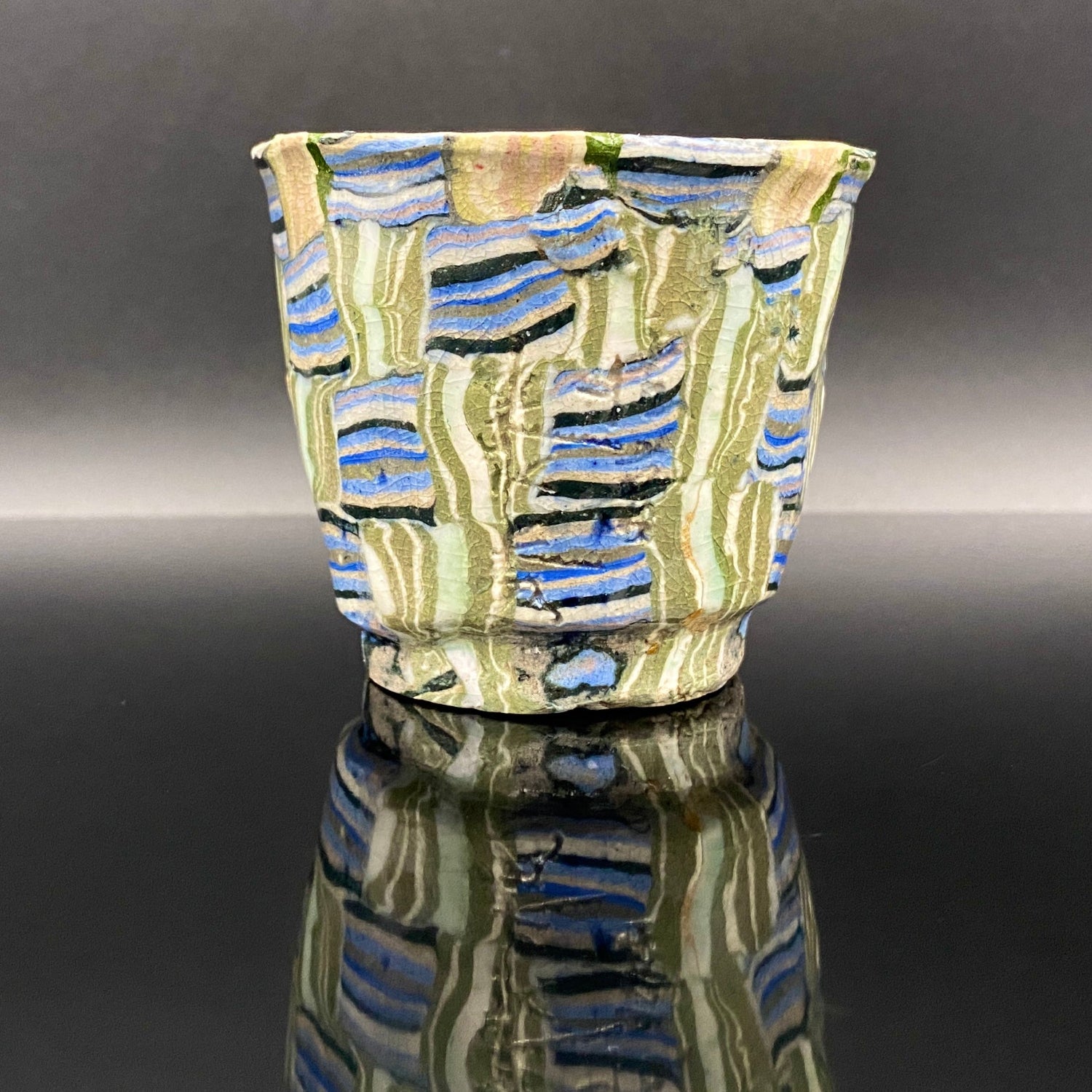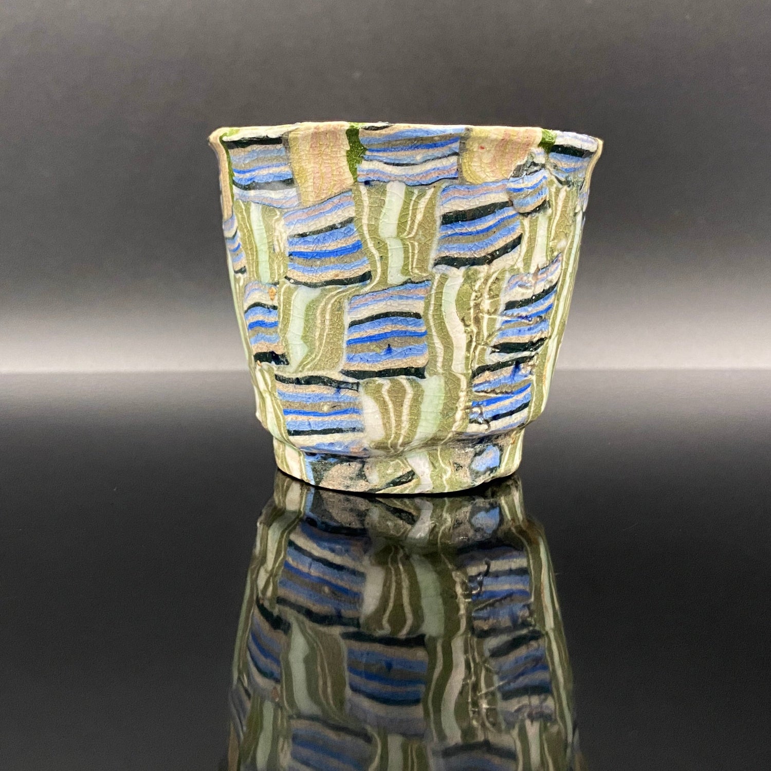 内田泰秀 晚年成熟期的杰作,失传的幻之技法“表里贯通锦练上手”陶瓷威士忌杯 #156